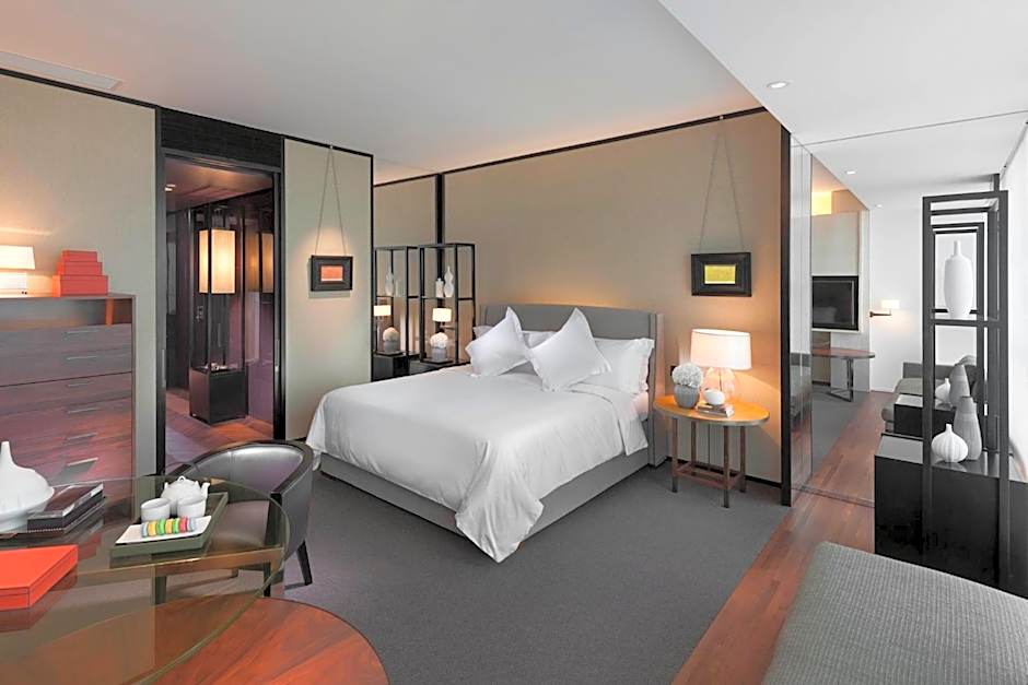Located on top floors, rooms feature sweeping views of the Guangzhou skyline through dramatic floor-to-ceiling windows. Rooms also boast exquisite spa-like bathrooms with circular-shaped baths and rainforest showers.